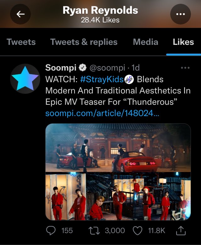 Ryan Reynolds likes a twit about Thunderous