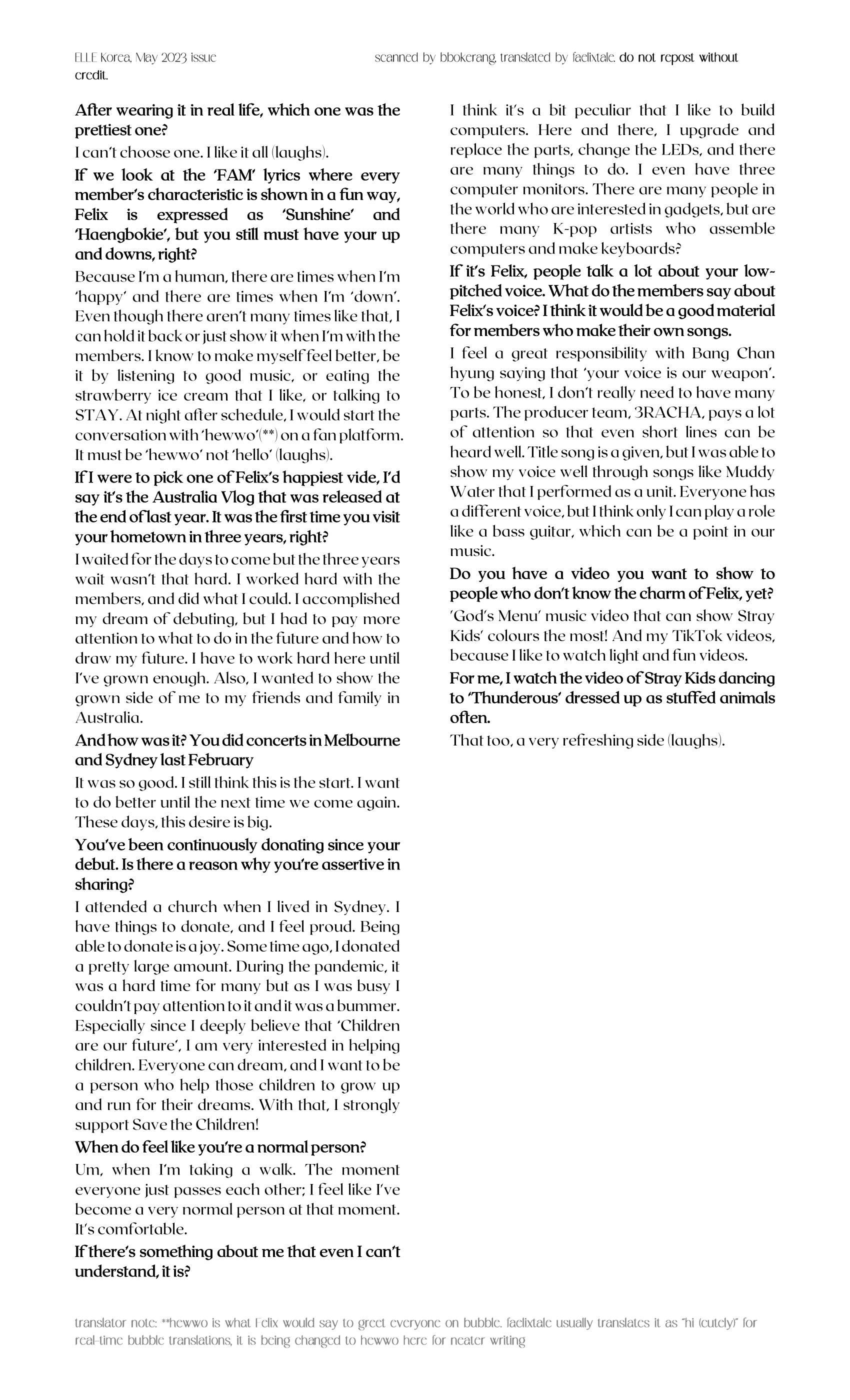 Felix interview @Elle May Issue [trans]